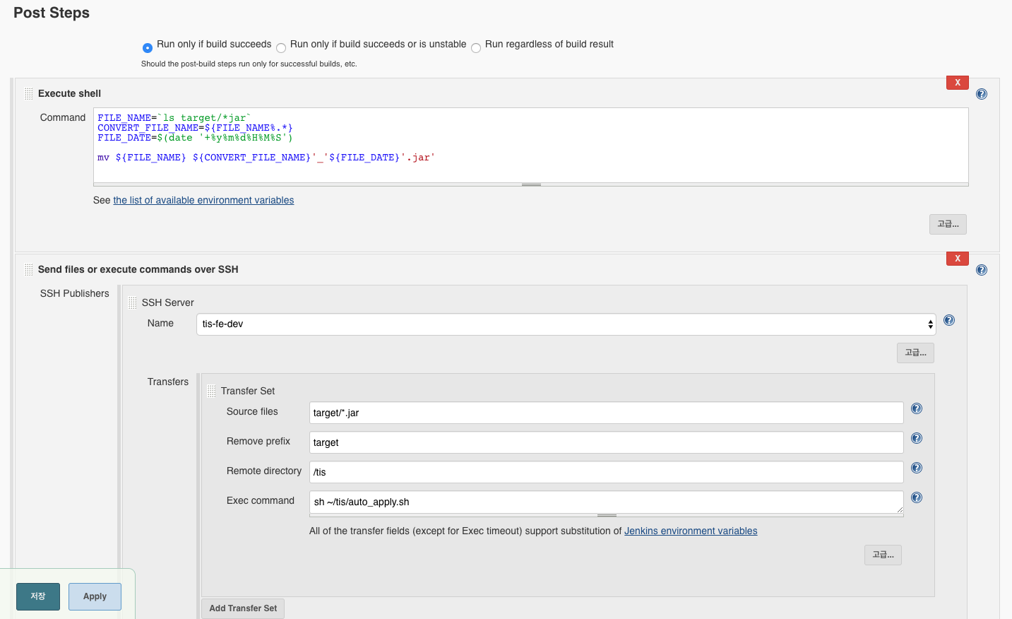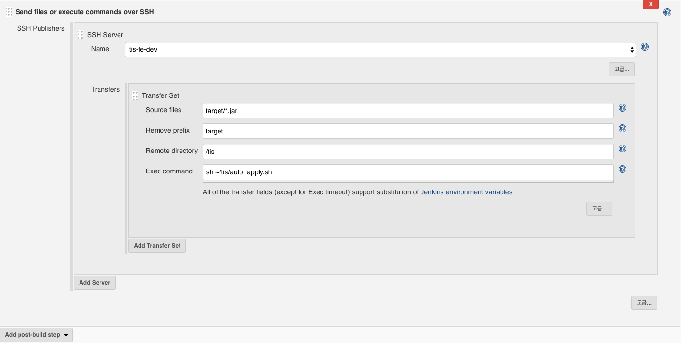 mv ${FILE_NAME} ${CONVERT_FILE_NAME}'_'${FILE_DATE}'.jar'3. Send files or execute commands over SSH 입력