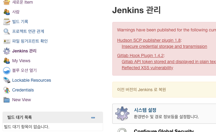 1. Jenkins 관리 - 시스템 설정 이동