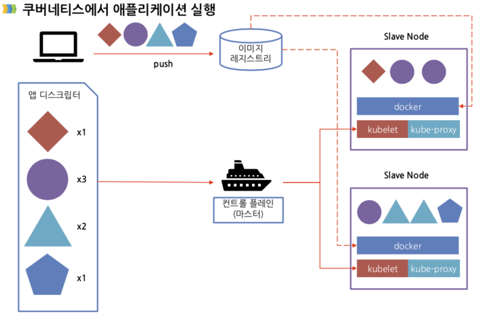 - 워커 노드: 실제 배포하고자 하는 애플리케이션의 실행을 담당