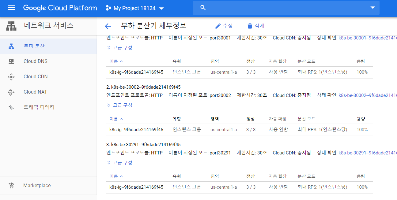 저 백엔드 서비스로 떠있는 것은 GCE에서 제공하는 로드밸런서이다