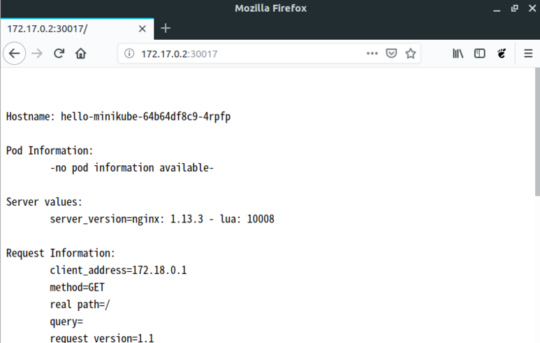 hello-minikube NodePort 10.107.241.245 <none> 8080:30017/TCP 118m