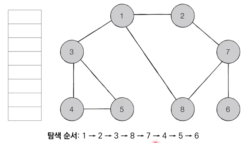- 대표적인 그래프 탐색 알고리즘으로는 DFS와 BFS가 있다