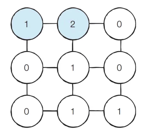 되고 새롭게 방문하는 (1, 2) 노드의 값을 2로 바꾸게 된다