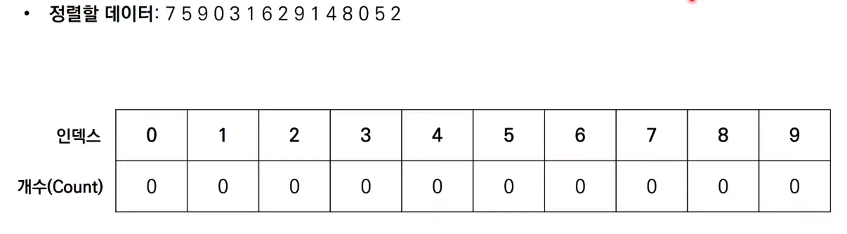 | 계수 정렬 | O(N + K) | O(N + K) | 데이터의 크기가 한정되어 있는 경우에만 사용이 가능하지만 매우 빠르게 동작한다 |