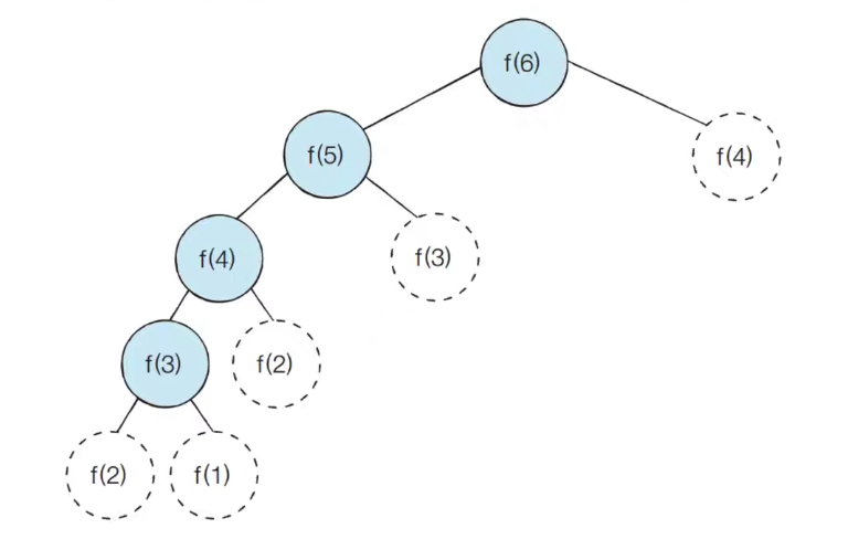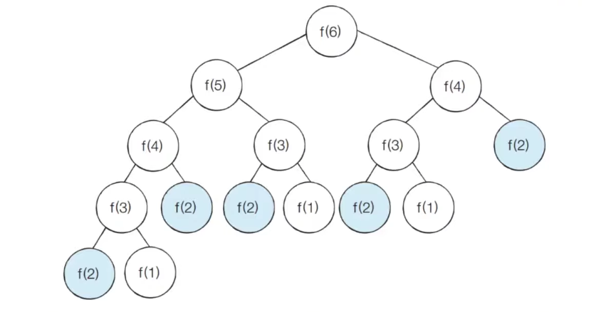 - 다음과 같이 𝒇(2) 가 여러 번 호출되는 것을 확인할 수 있다 (중복되는 부분 문제)
