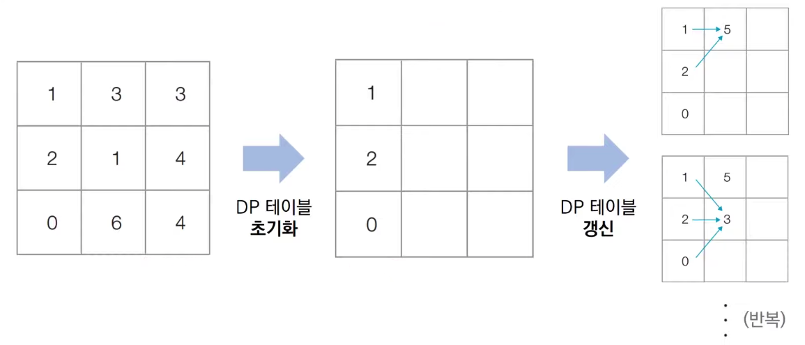 - 결과 저장용 리스트는 DP 테이블이라고 부른다