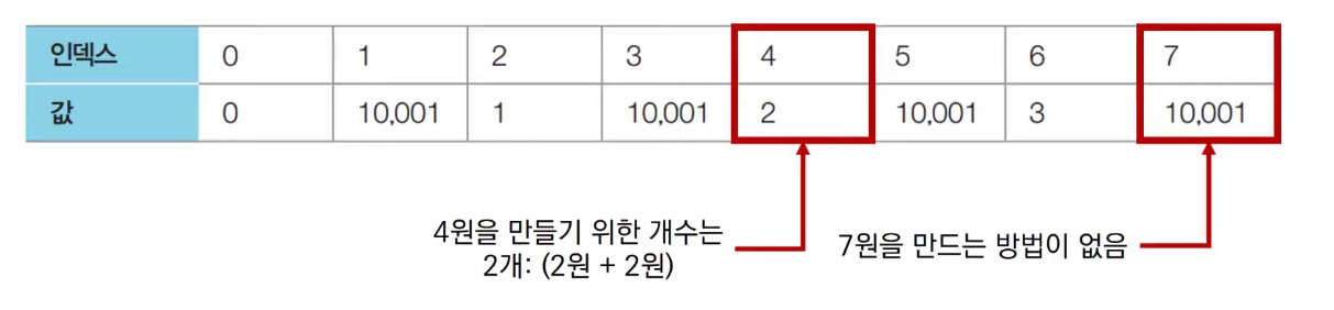 # 다이나믹 프로그래밍을 위한 1차원 DP 테이블 초기화