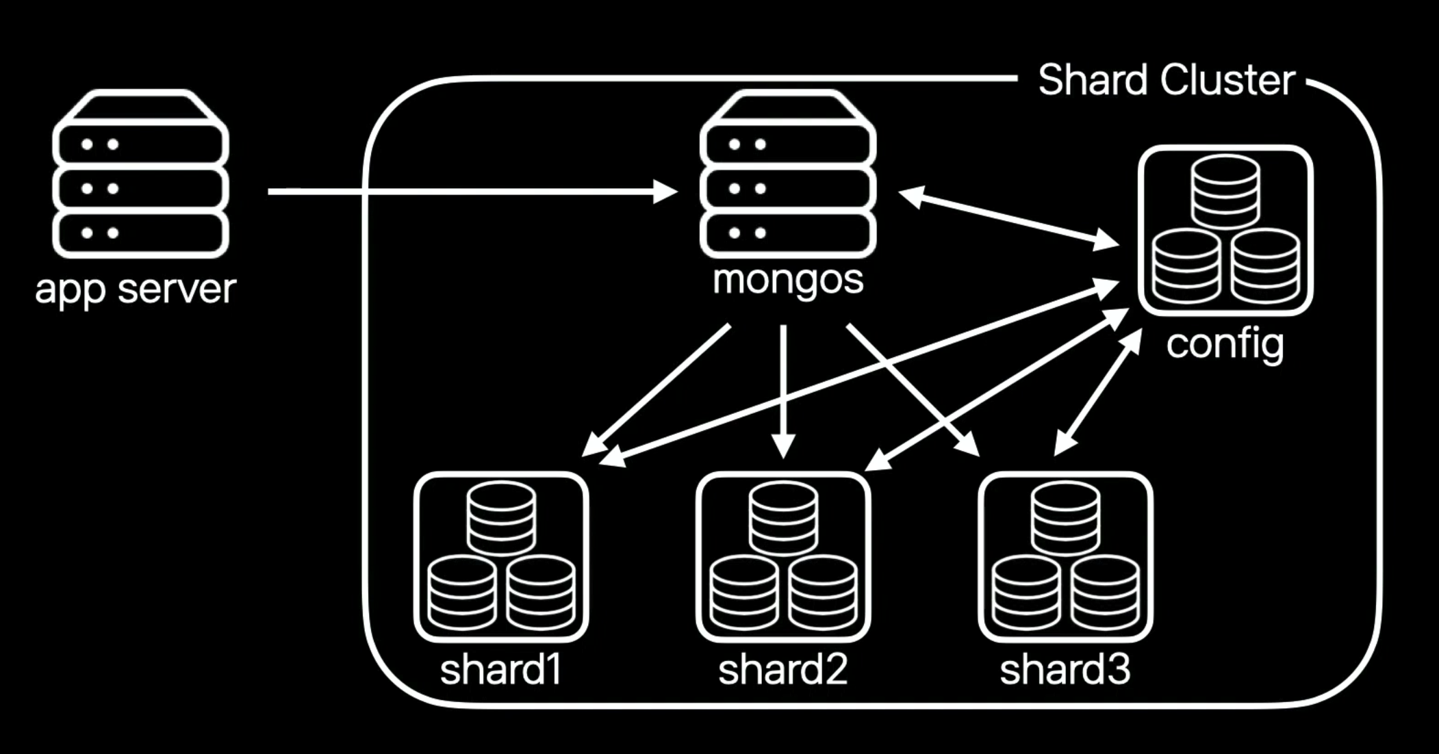샤드 클러스터 바깥쪽에 Application 서버는 샤드 클러스터 내의 동작 과정을 알 필요 없이