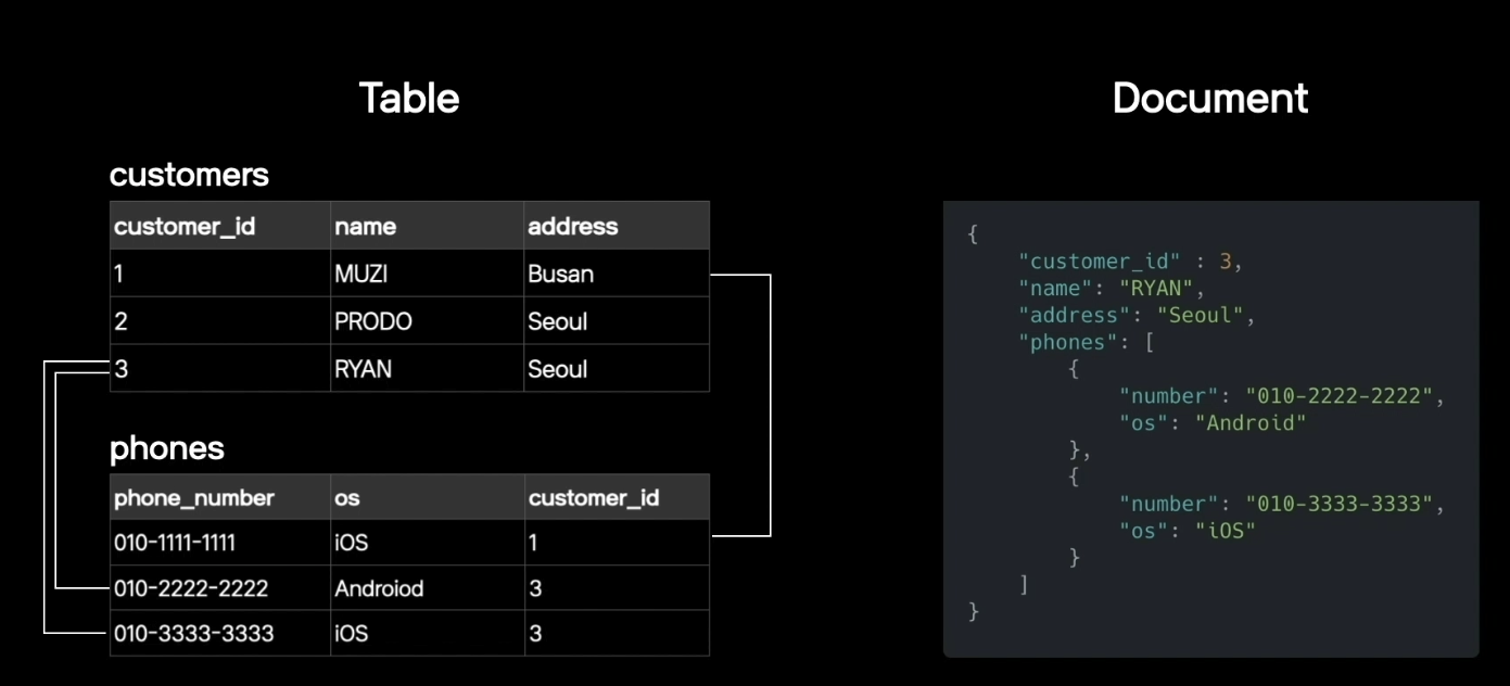 Document 는 다양한 형태의 데이터를 한번에 담을 수 있으므로 여러가지 정보를 한눈에 볼 수 있게 표현해준다