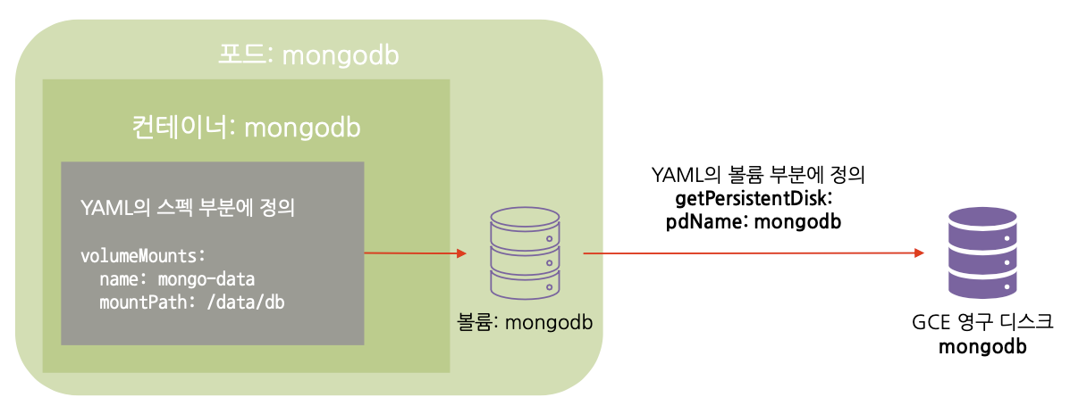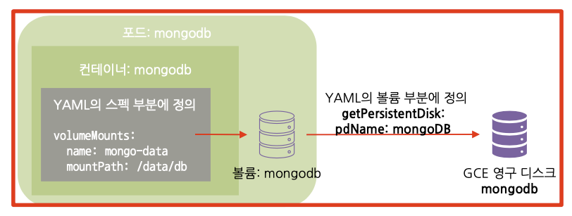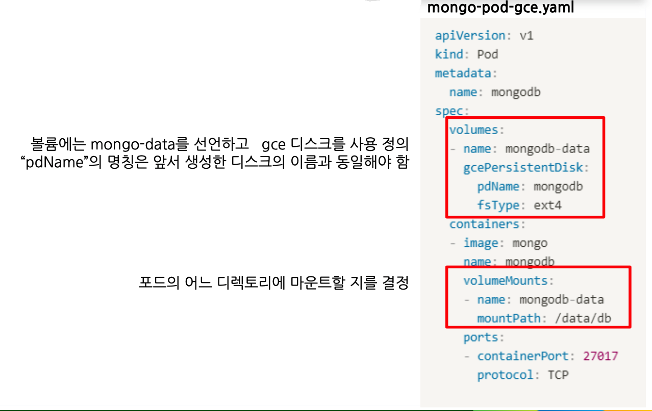 gcePersistentDisk: 구글 컴퓨트 엔진 (GCE) 영구디스크 마운트 (awsElasticBlockStore, azureDisk 또한 클라우드에서 사용하는 형태)
