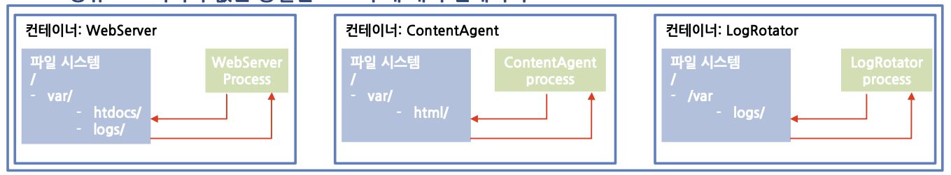 포드의 각 컨테이너에는 고유의 분리된 파일 시스템 존재
