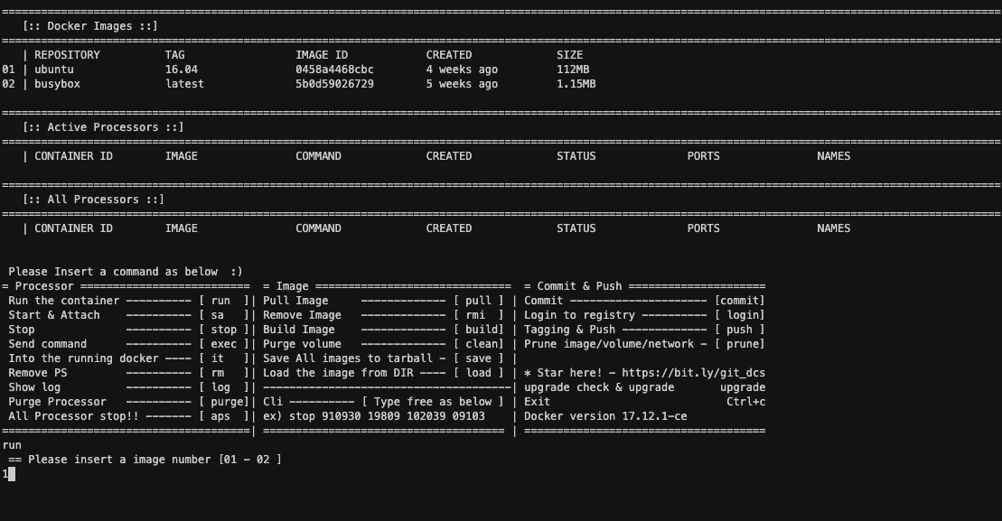 해당 툴에서 간편하게 사용중인 Docker Processor 와 생성된 Docker Image를 관리 할 수 있다