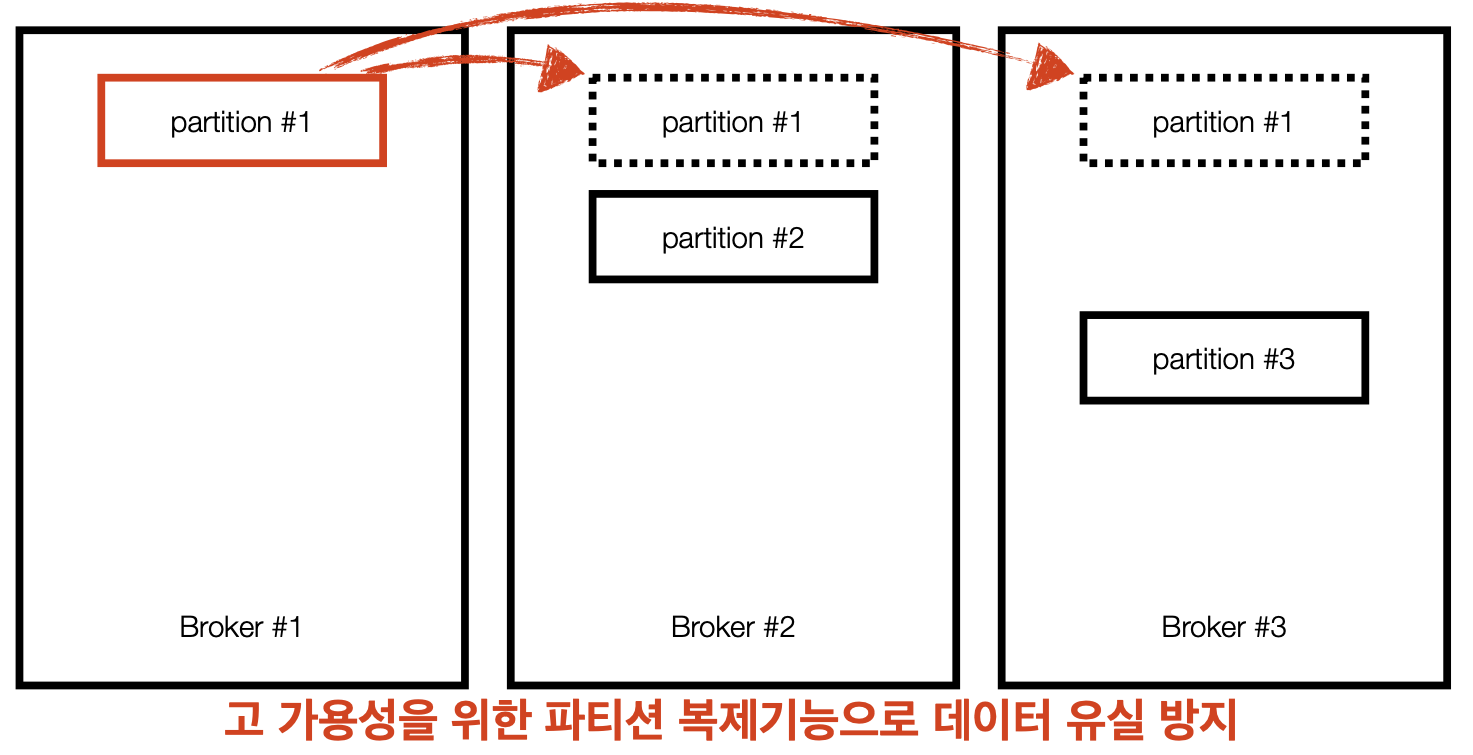 1번 Broker에 이슈가 생기면 다른 Broker에 복제된 데이터를 사용한다