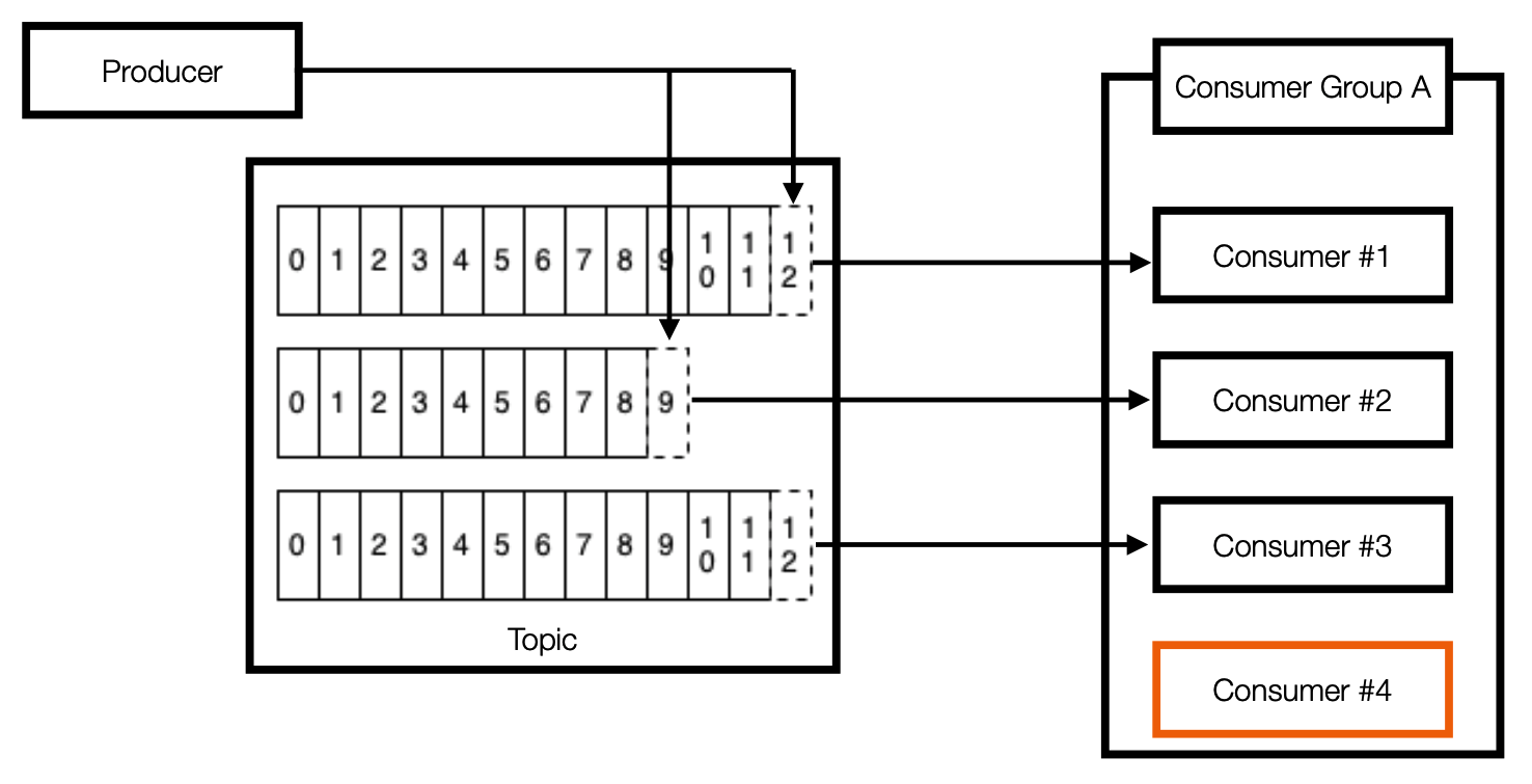 - 남은 컨슈머는 파티션을 할당받지 못하고 대기 중
