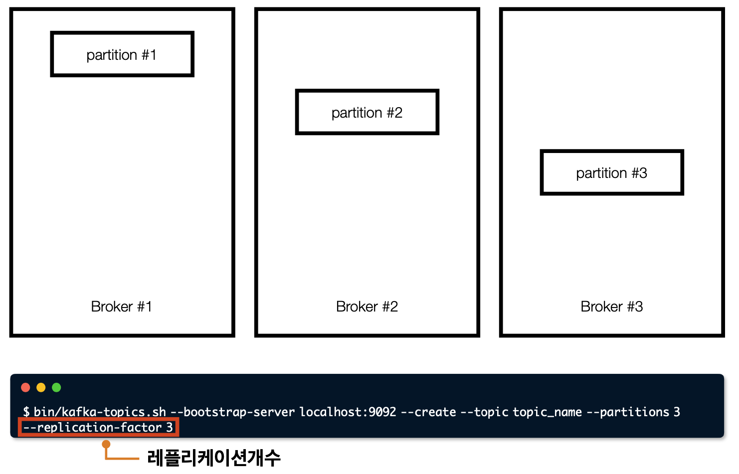 $ bin/kafka-topics.sh --bootstrap-server localhost:9092 --create --topic topic_name --partitions 3 --replication-factor 3