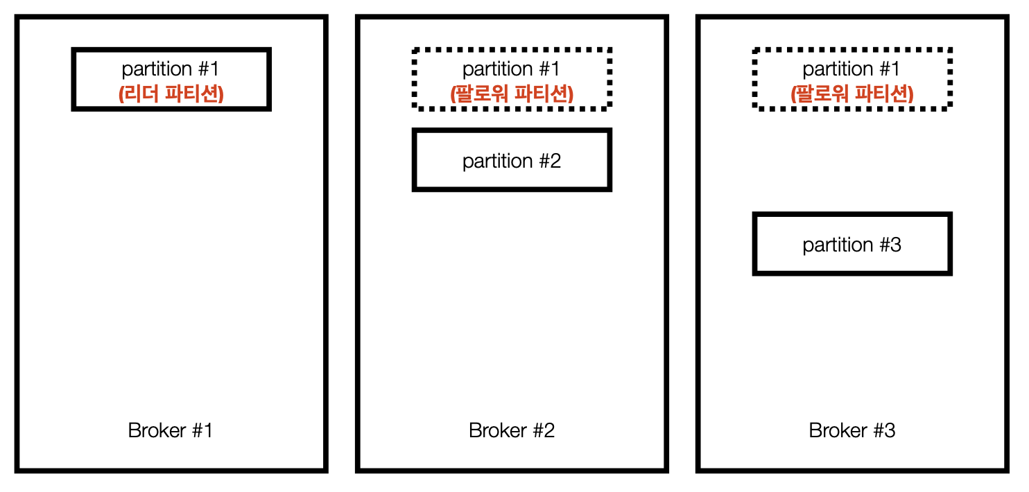 - 리더 파티션 : Kafka 클라이언트와 데이터를 주고 받는 역할
