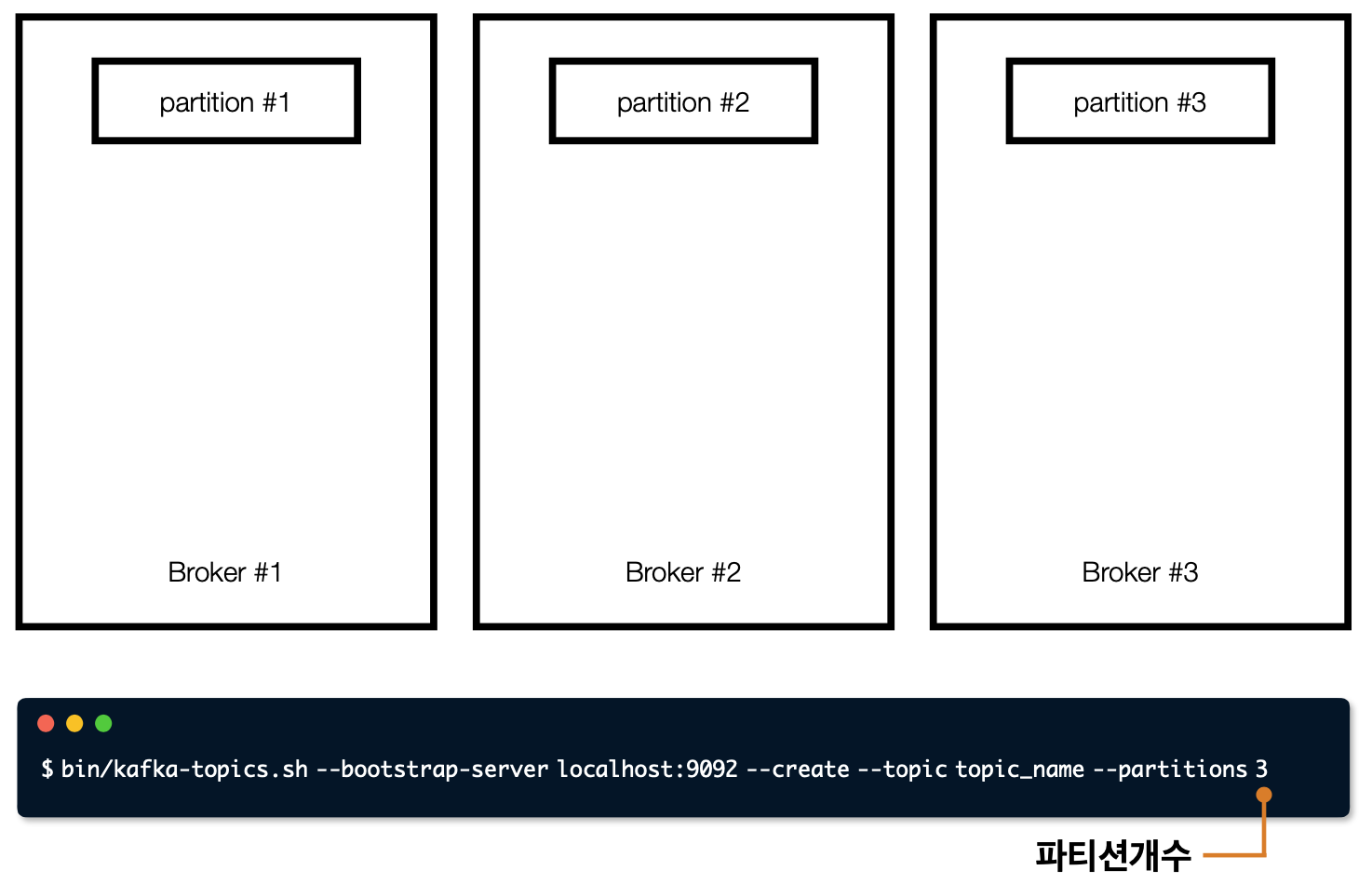 $ bin/kafka-topics.sh --bootstrap-server localhost:9092 --create --topic topic_name --partitions 3