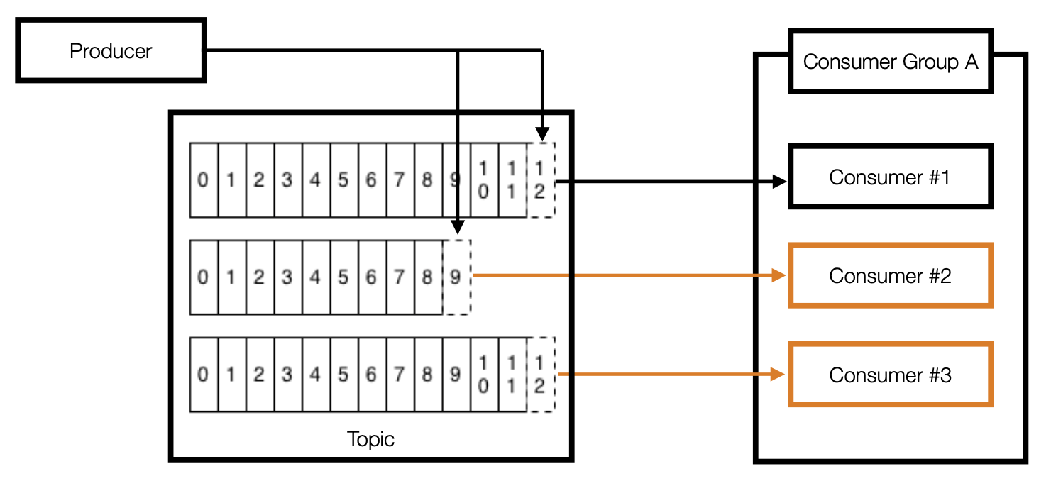 - Consumer offset : 특정 컨슈머가 가져간 레코드의 번호