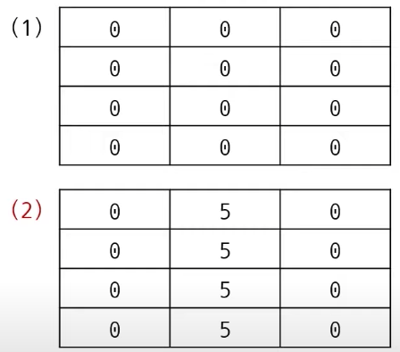 - 만약 2차원 리스트를 초기화할 때 다음과 같이 작성하면 예기치 않은 결과가 나올 수 있음