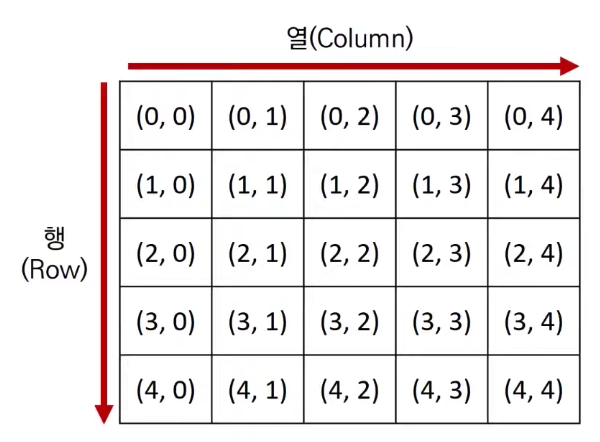 일반적으로 알고리즘 문제에서의 2차원 공간은 행렬(Matrix)의 의미로 사용된다