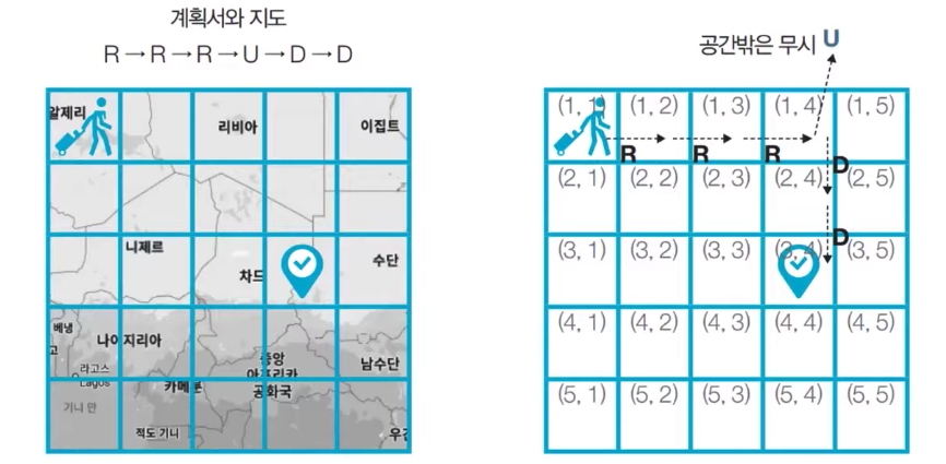 각 문자의 의미는 다음과 같다- L: 왼쪽으로 한 칸 이동