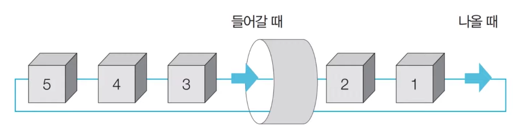 - 먼저 들어 온 데이터가 나중에 나가는 형식(선입후출)의 자료구조이다