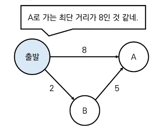 - 다익스트라 최단 경로 알고리즘은 음의 간선이 없을 때 정상적으로 동작한다