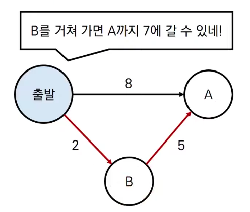 # 현재 노드를 거쳐서, 다른 노드로 이동하는 거리가 더 짧은 경우