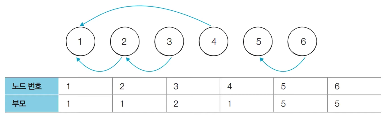 - [초기 단계] 노드의 개수 크기의 부모 테이블을 초기화한다