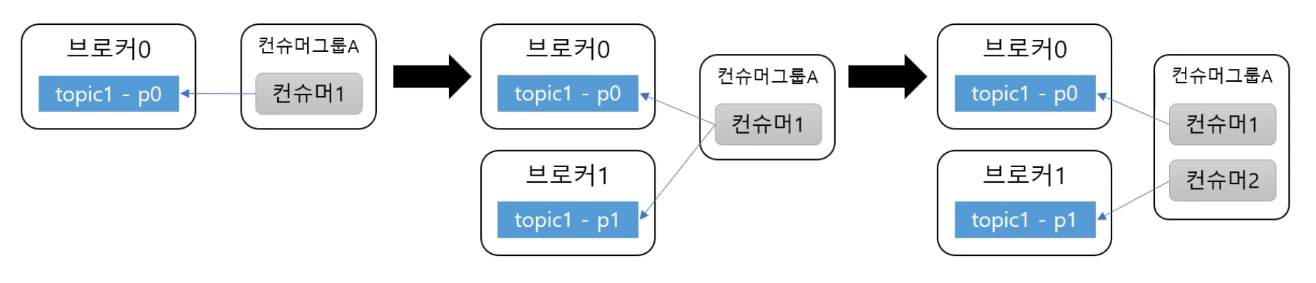 - 1개 장비의 용량 한계 -> 브로커 추가, 파티션 추가