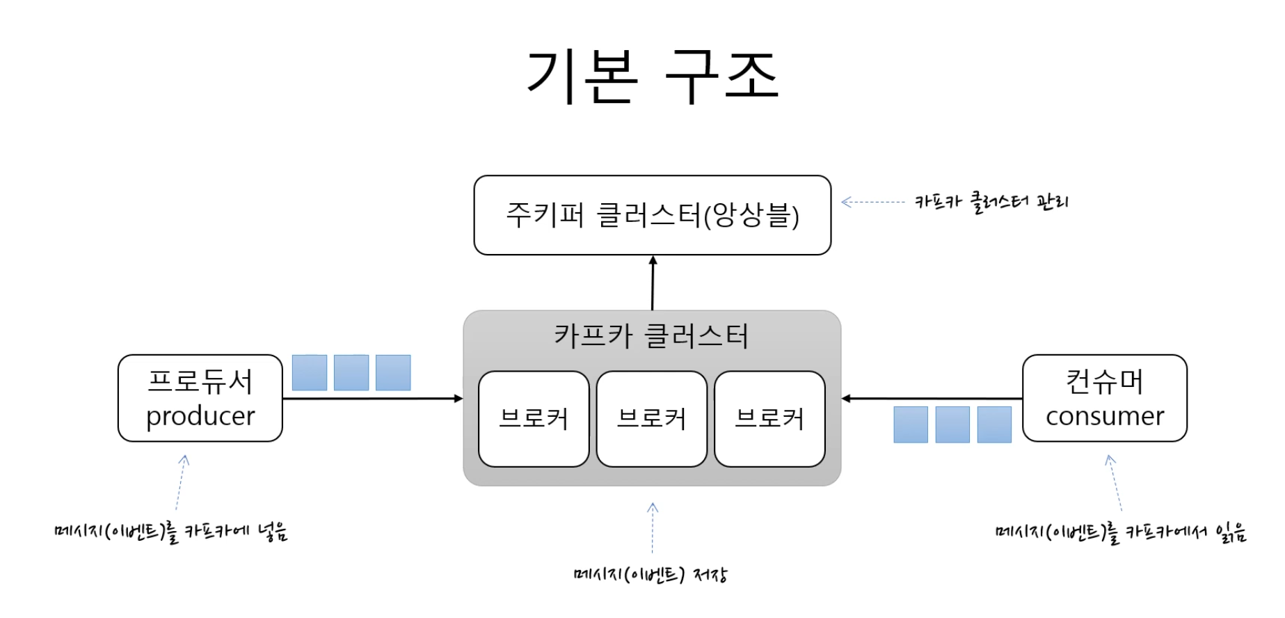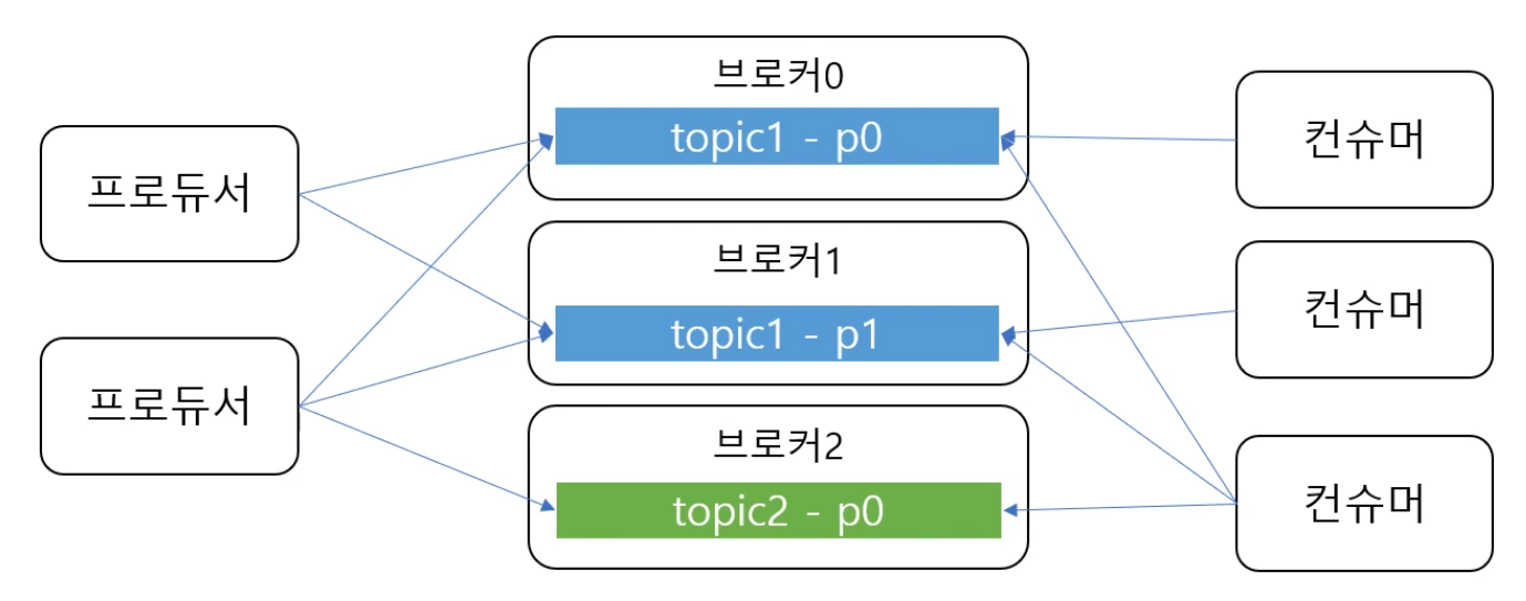 - 프로듀서와 컨슈머가 토픽을 기준으로 메시지를 주고 받음