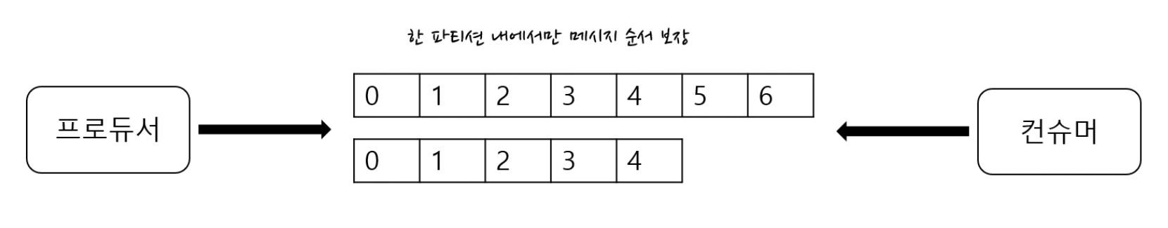 - 같은 키를 갖는 메시지는 같은 파티션에 저장 -> 같은 키는 순서 유지