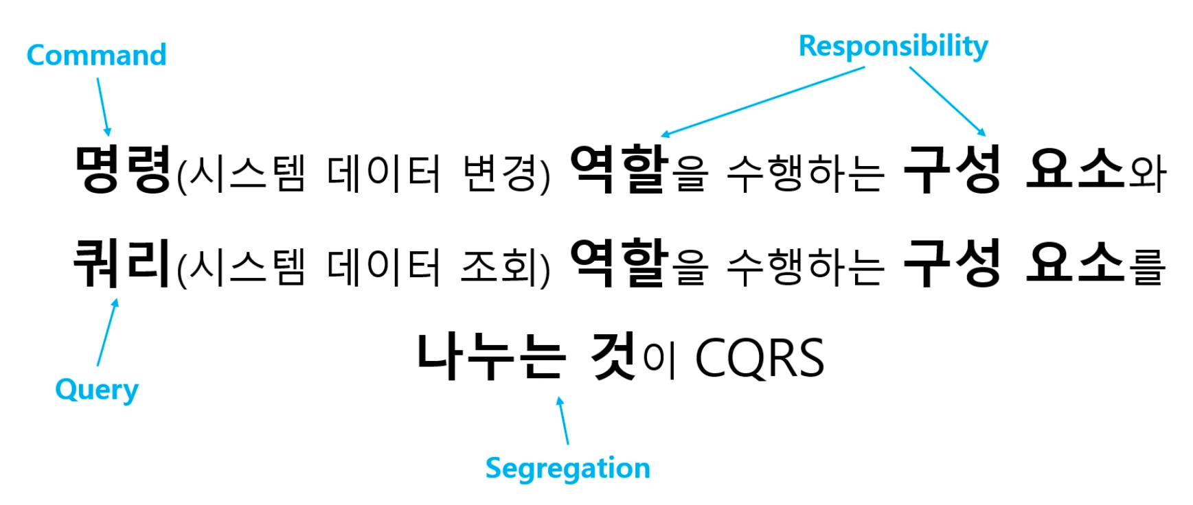 쉽게 말해서 시스템 데이터를 변경하는 코드와 시스템 데이터를 조회하는 코드를 따로 만드는 것이라고 볼 수 있음