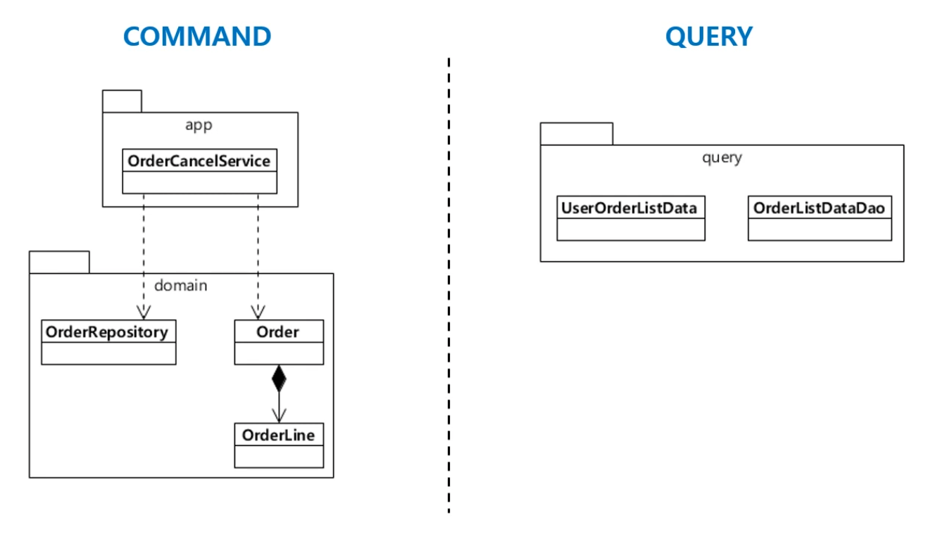 명령과 쿼리는 코드 변경 빈도, 사용자 다름