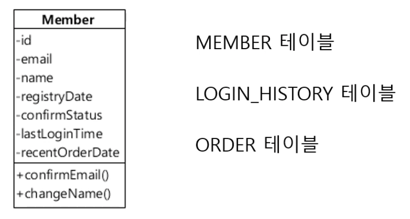 - 예를 들어 이름변경 기능에서는 Member 테이블에 해당하는 데이터만 읽어와서 Member 객체를 만들고