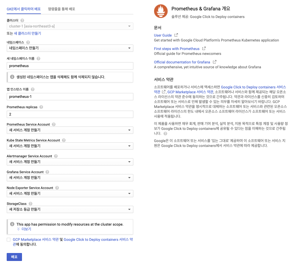 - GKE에 프로메테우스를 설치하려면 최소 노드당 CPU 2 이상의 퍼포먼스가 필요