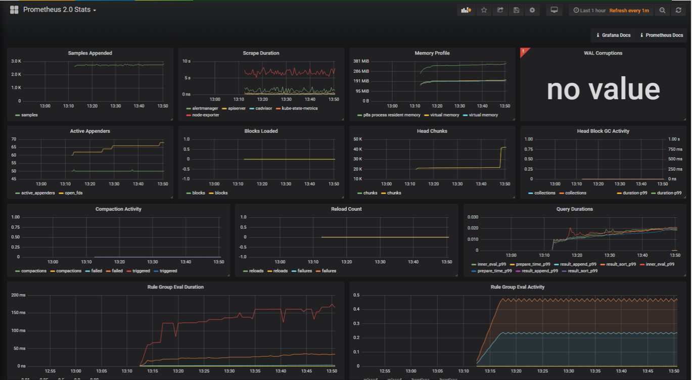 - Prometheus에 메트릭에 대한 쿼리를 위한 사용자 인터페이스를 제공하고 사전 구성된 대시 보드의 메트릭을 시각화