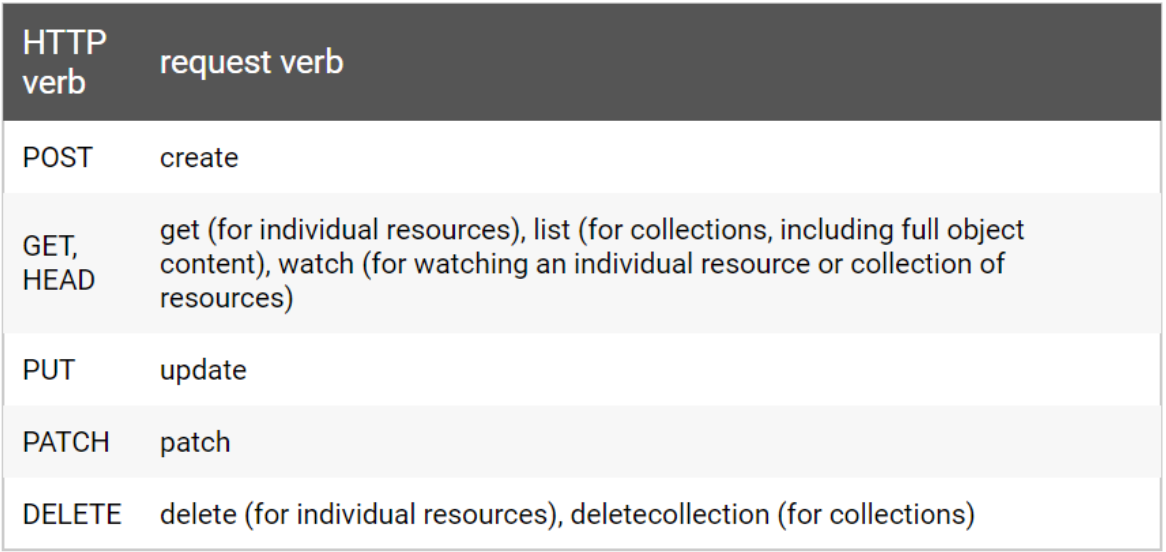 verbs: ["get", "list", "watch", "create", "update", "patch", "delete"]- 룰에는 api 그룹, 리소스, 작업 가능한 동작을 작성
