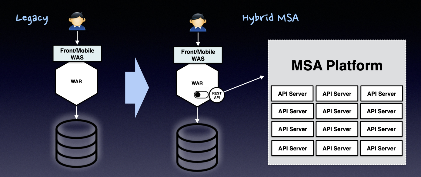 - Legacy 코드에서는 새로운 API 서버들을 호출