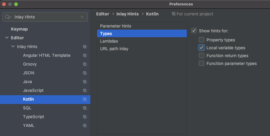Preferences > Editor > Inlay Hints > Kotlin > Types > Local variable types 체크
