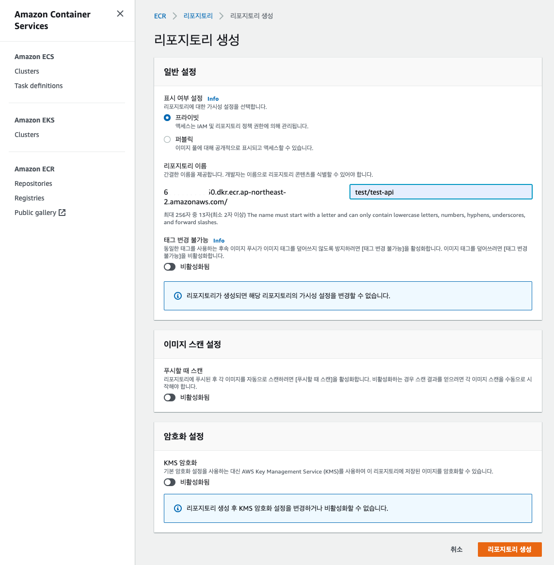 1. AWS ECR Private Repository 생성