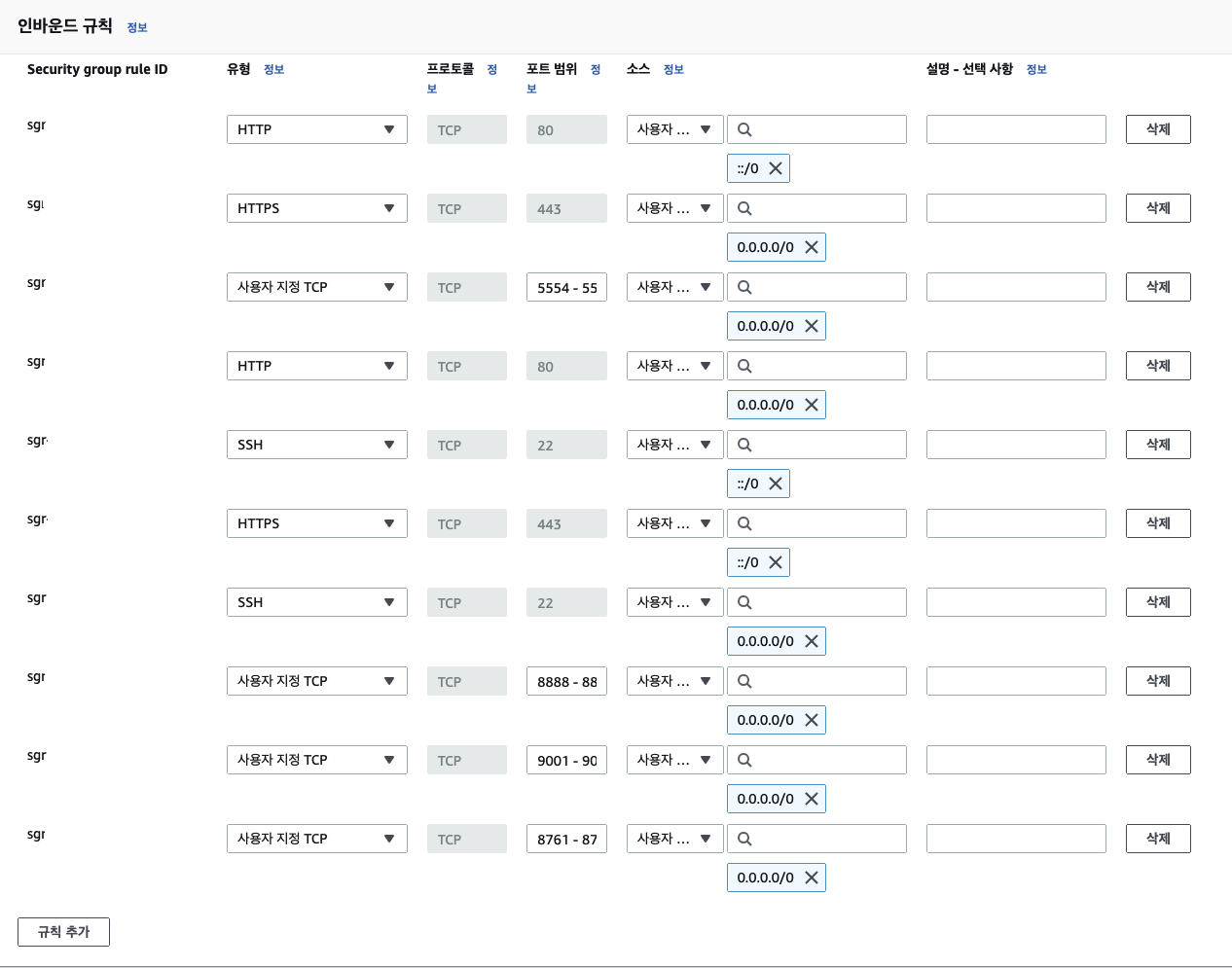 ALB에서 Server 접속을 위해 필요한 포트를 인바운드 규칙으로 추가