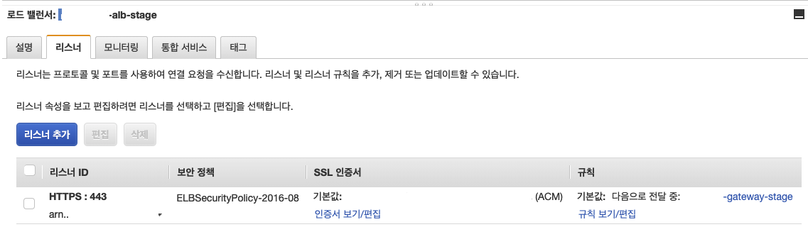 리스너 탭에서 인증서 보기/편집 클릭
