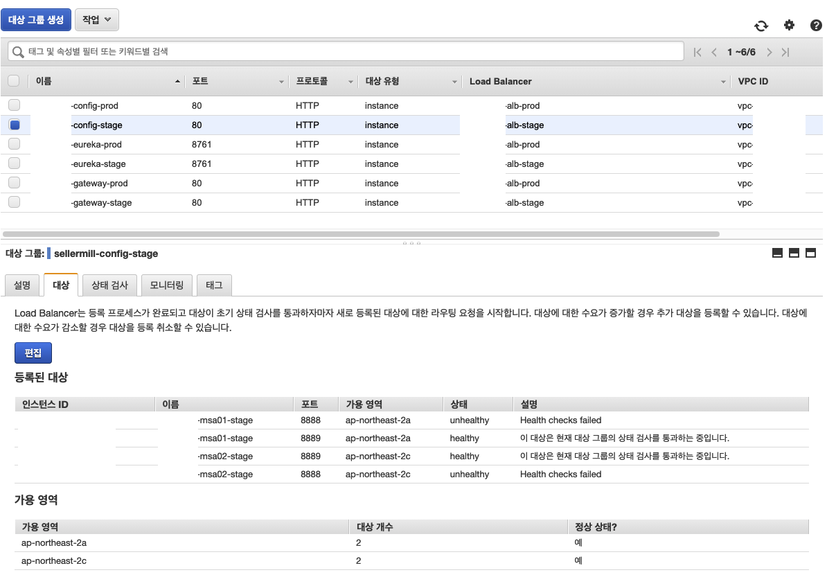 config 대상그룹 생성 포트는 서버에서 블루/그린으로 배포되므로 8888/8889 두개를 등록