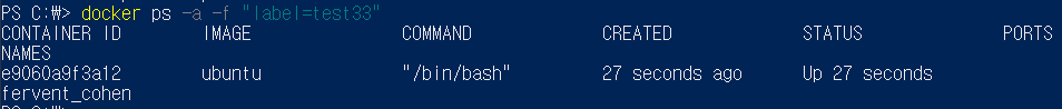 | before or since | 설정 컨테이너를 기준으로 전에 / 이후에 만들어진 컨테이너 확인이 가능하다docker ps -a -f 'before=fervent_feynman'docker ps -a -f 'since=fervent_feynman' |