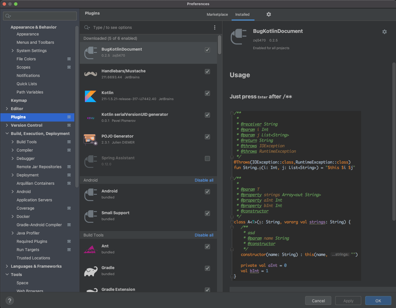 BugKotlinDocument - IntelliJ IDEs Plugin | Marketplace