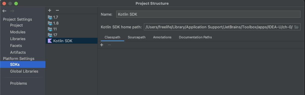 Kotlin SDK home path 위치는 MacOS 기준으로 아래와 같다