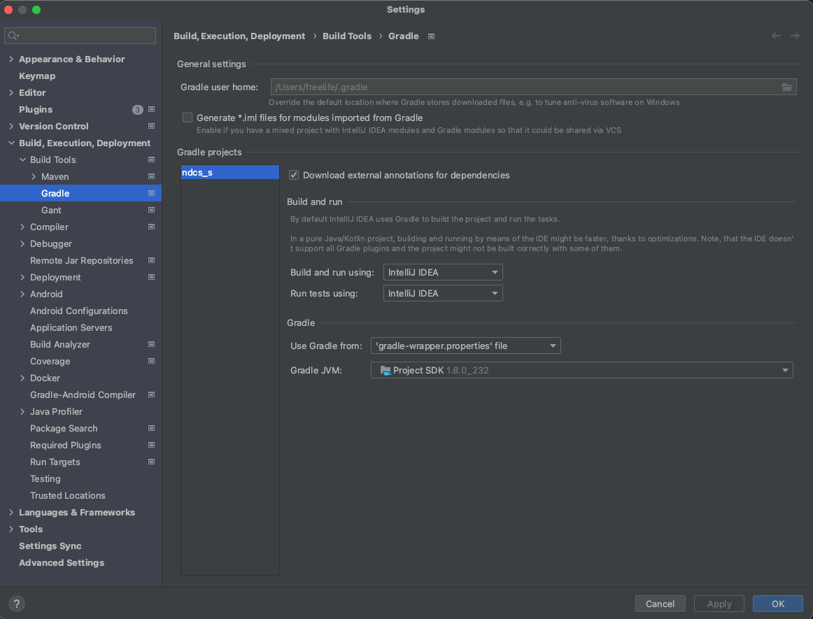 - [Build, Excution, Deployment > Build Tools > Gradle] 클릭