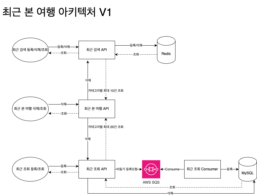 📌 최근 본 여행 아키텍처 V1 (변경 전)