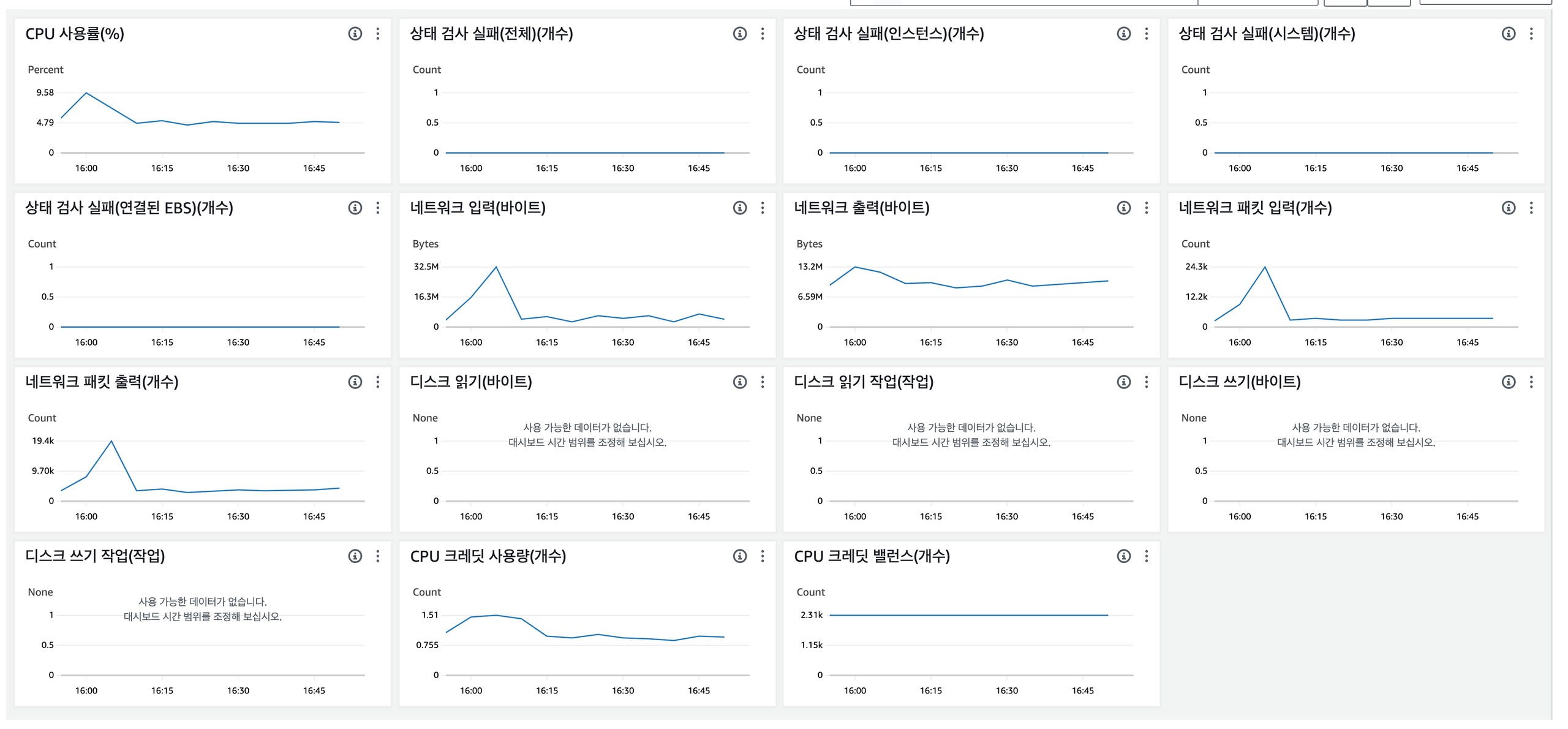 - 개발서버(t3a.xlarge 4 vCPU/16 GiB)에서 부하테스트 실행 운영 서버에서는 더 괜찮은 성능이 나올 것으로 기대함